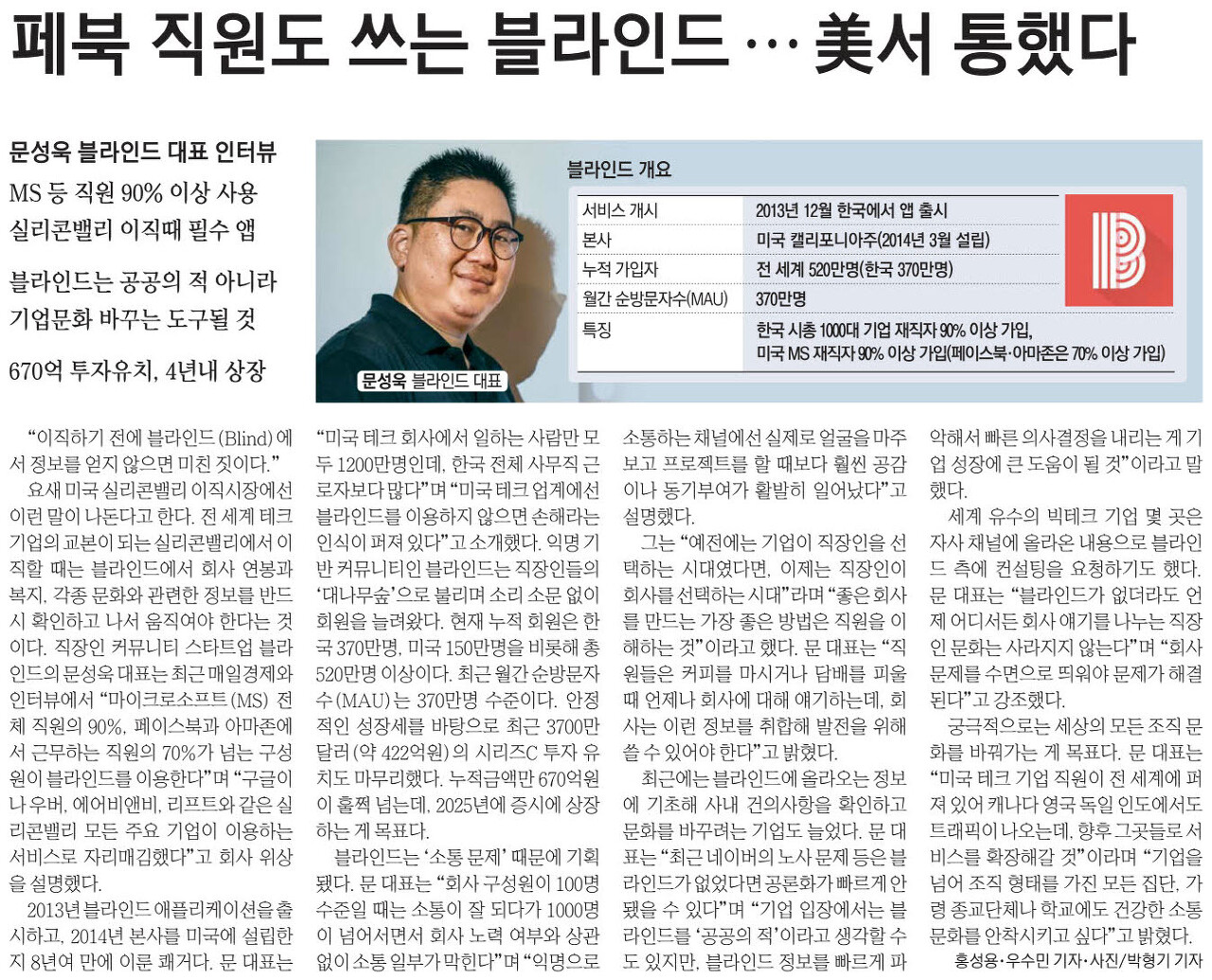 블라인드는 익명성을 보장하여 기업들에 대한 소통창구로 쓰인다. 나는 이 기사를 보면서 한국의 잡플래닛이 생각났다. 그 이유는 잡플래닛도 회사에 대한 내용, 후기 등을 남겨놓기 때문입니다. 이로 인해 기업의 문화가 개선된다던지, 아니면 구직자가 직장을 구할 때 고려한다던지 등 좋은 플랫폼이라고 생각한다.